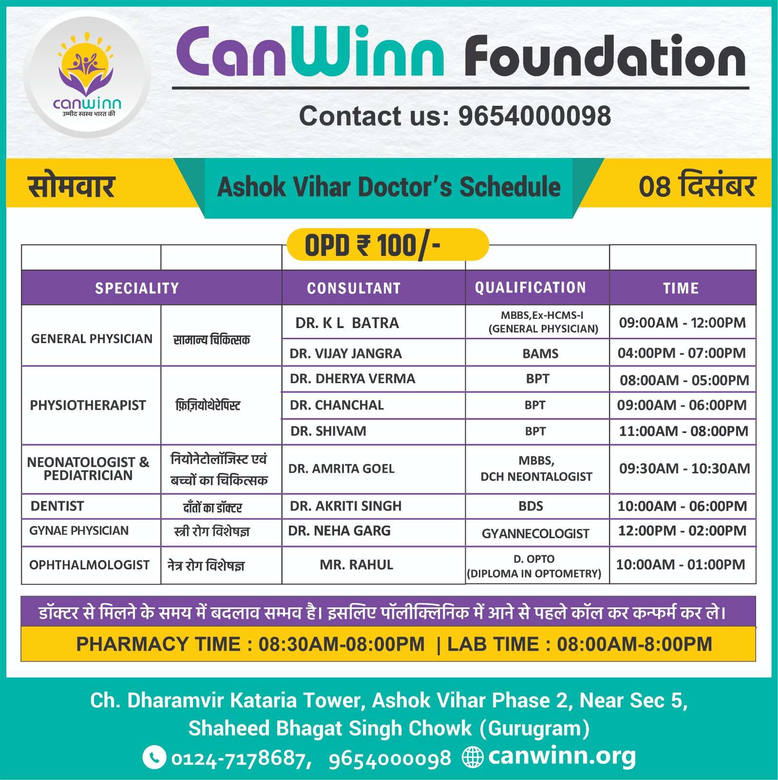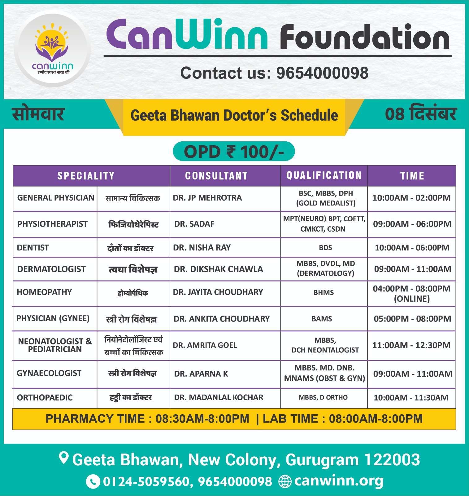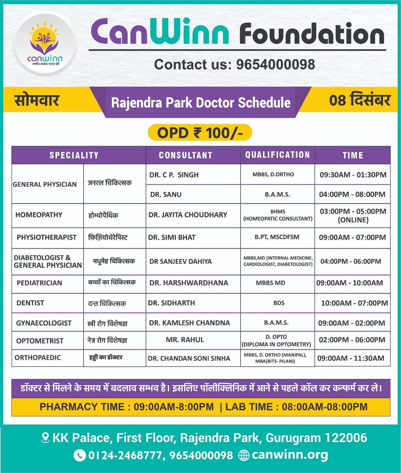 DR.  MOHIT SANDHU GENERAL PHYSICIAN 12:00PM – 08:00PM