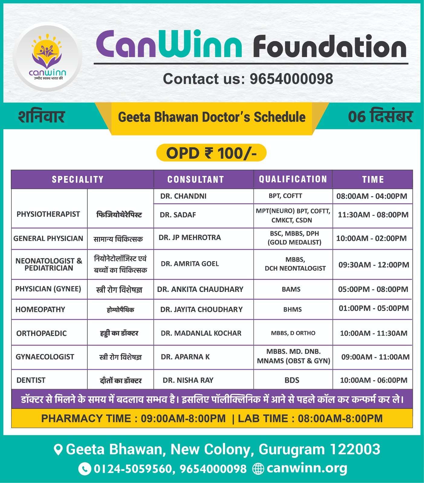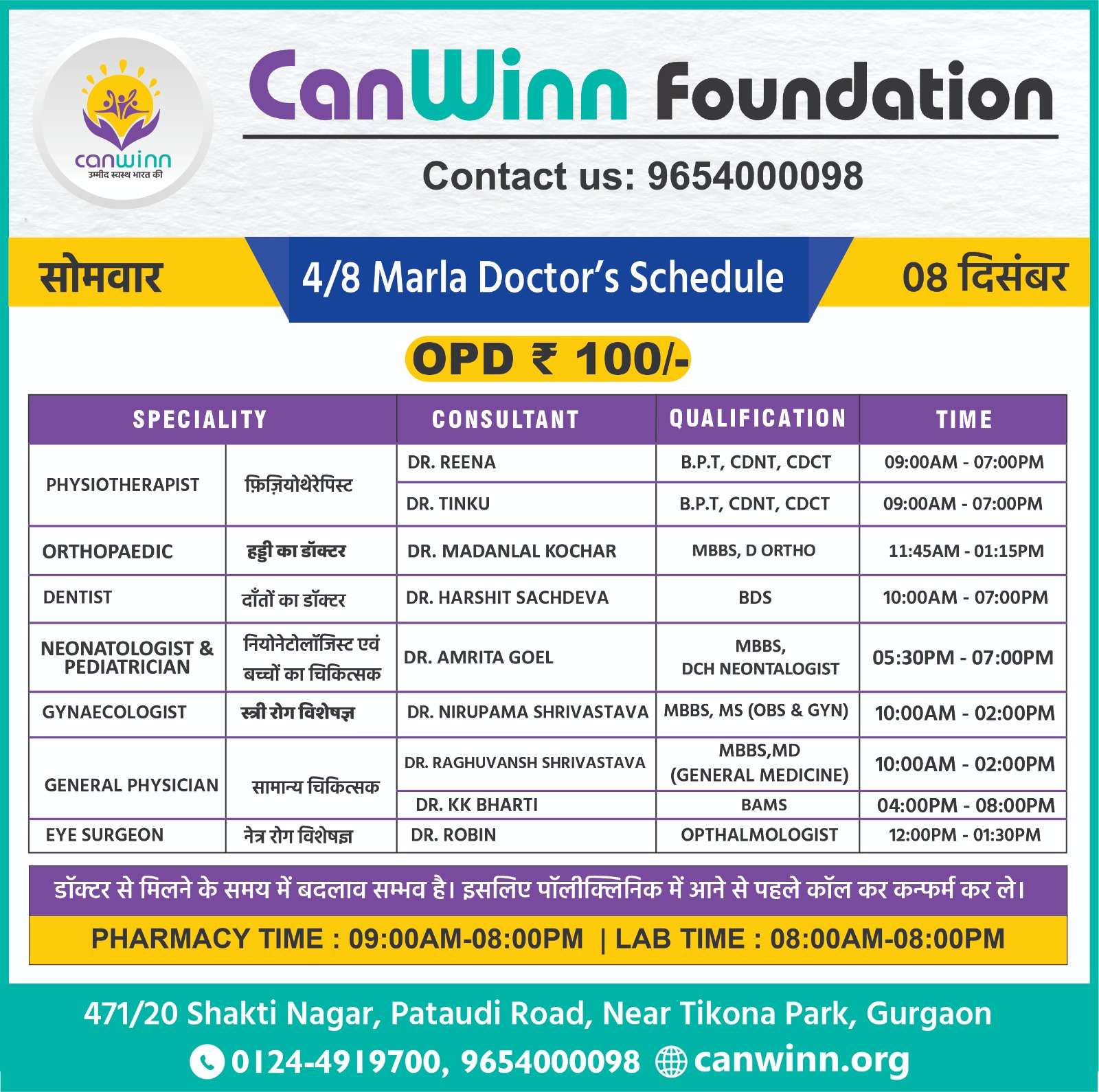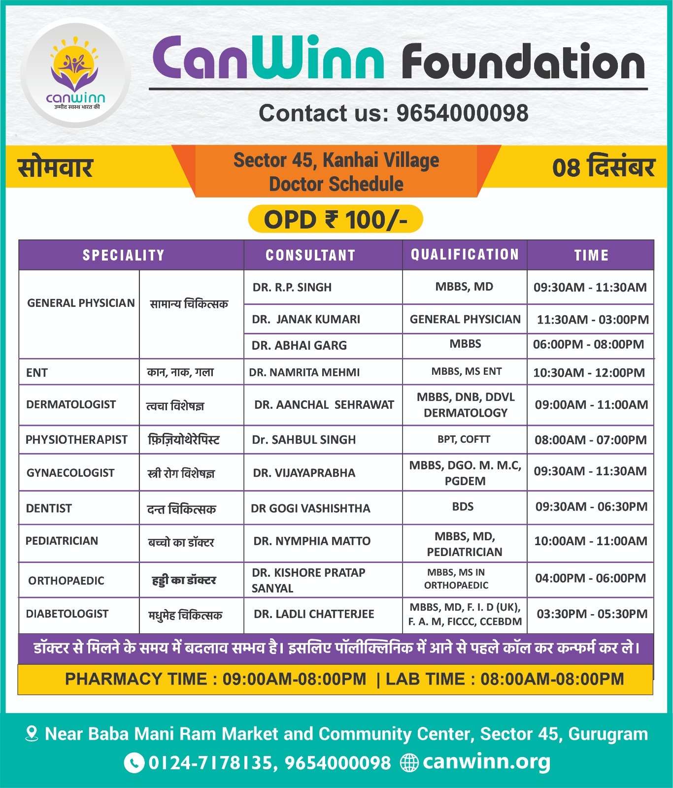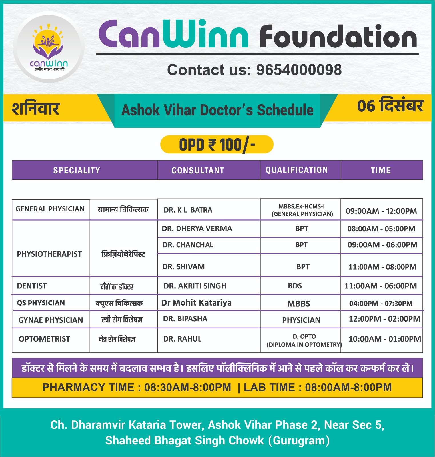 DR.  MOHIT SANDHU GENERAL PHYSICIAN 12:00PM – 08:00PM
