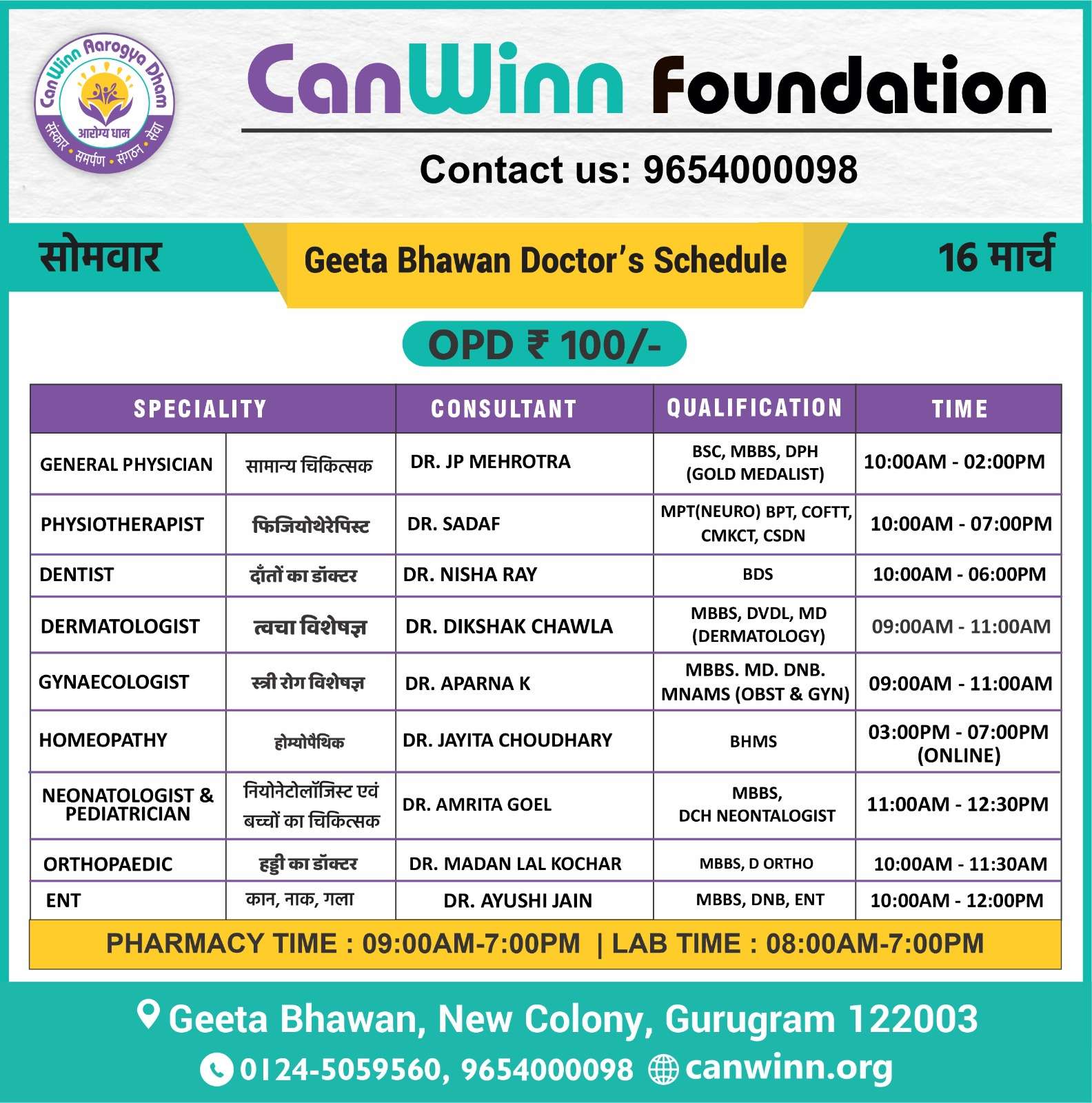 GYNAECOLOGIST DR. SHEELA GAUR 10:00AM – 12:00AM