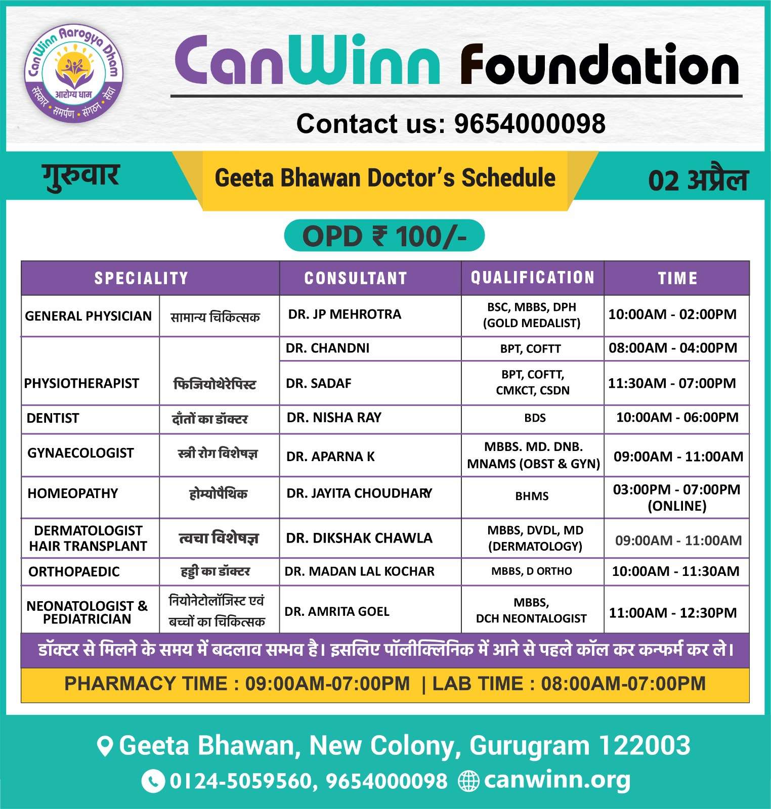 DIETICIAN DR. GEETIKA 10:00AM – 02:00PM